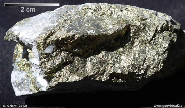 Aparece en vetas hidrotermales asociado con sulfuros de cobre (calcopirita, bornita).