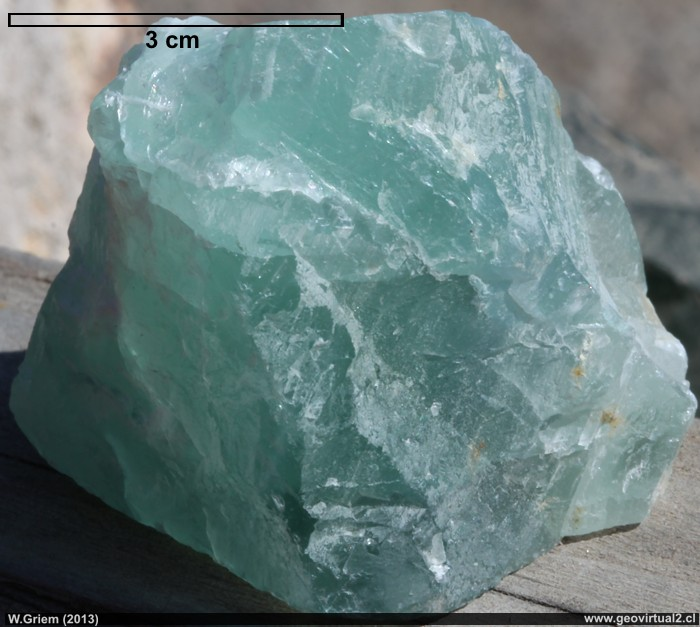 Raya vidrio y acero; sólo corindón/diamante lo rayan. Frágil a impactos por clivaje perfecto.Peso específico: 3,4 – 3,6 g/cm³ (≈3,55).