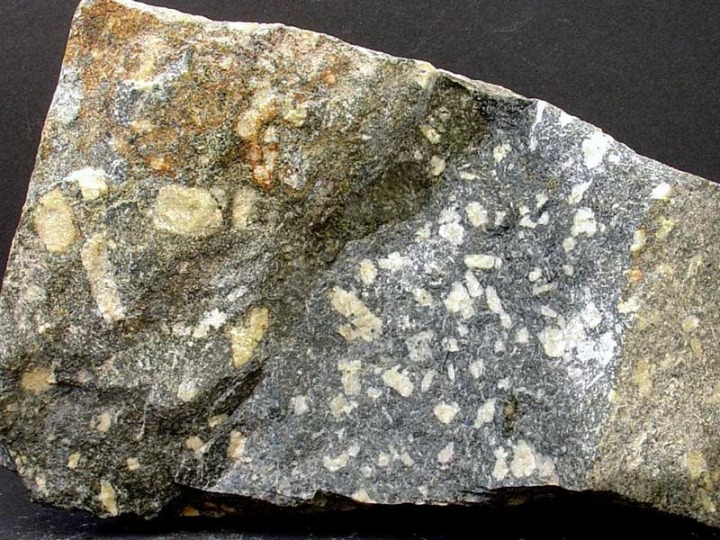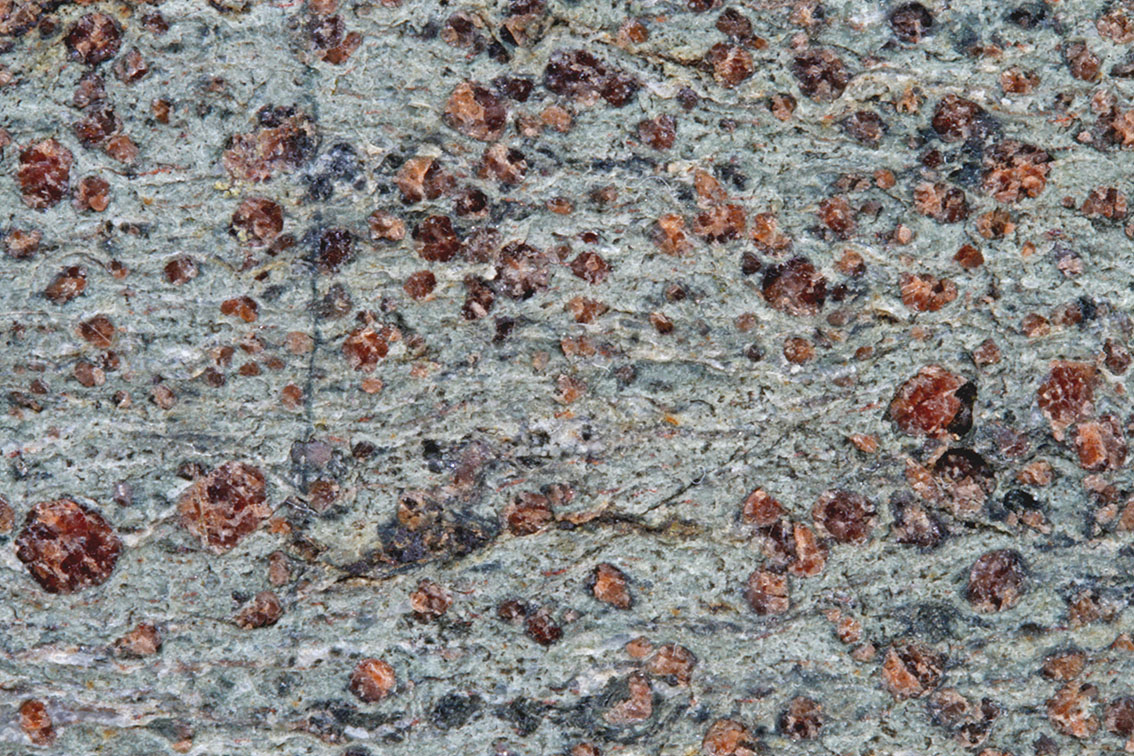Fig. 5.4 Pequeños cristales de almandino en eclogita., Tomado de fuente#
